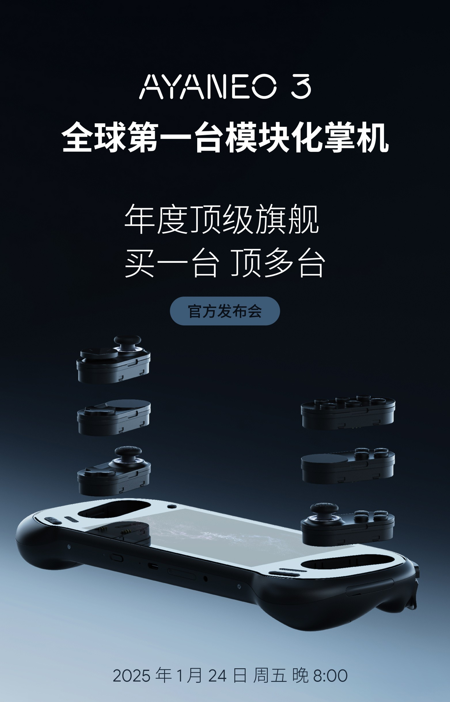 “全球首款模块化掌机”AYANEO 3 官宣,明晚发布